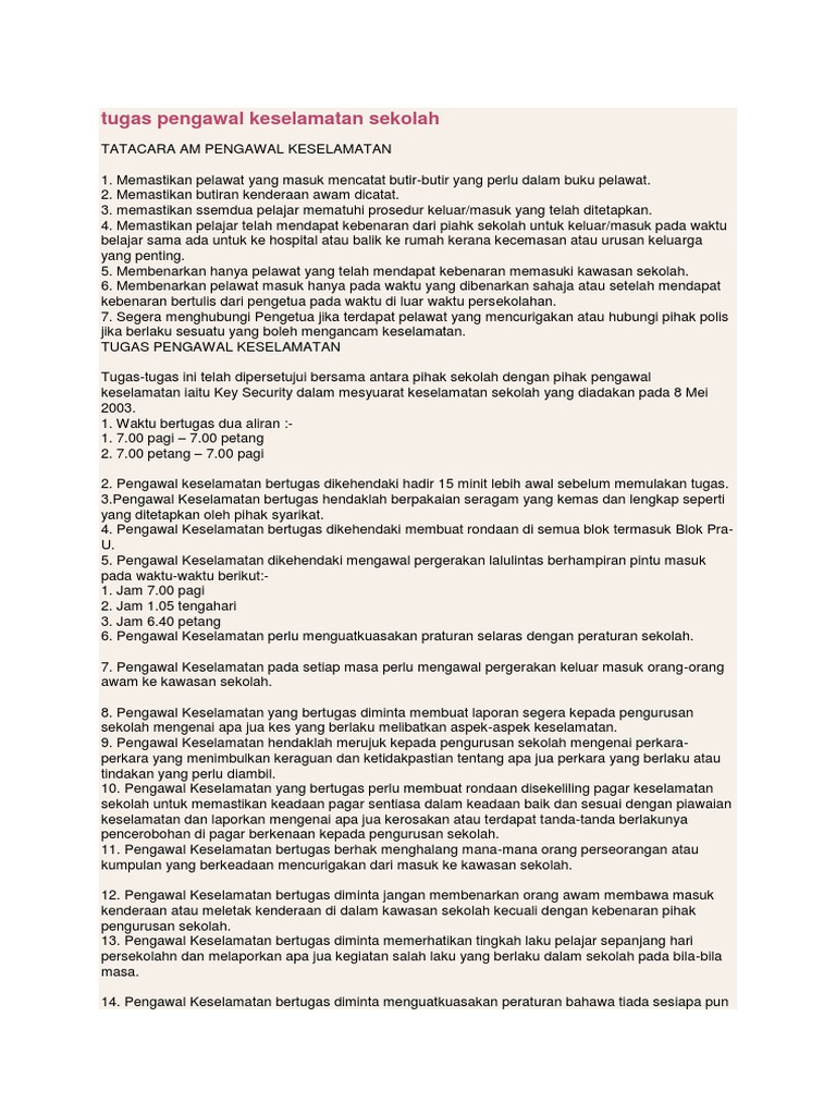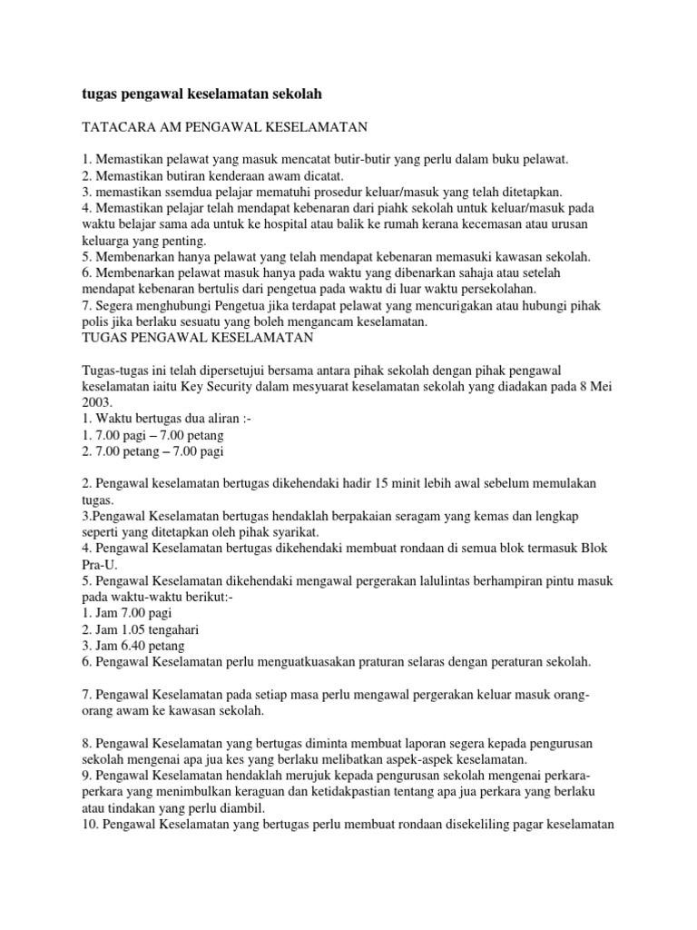 Tugas Pengawal Keselamatan Sekolah Pdf